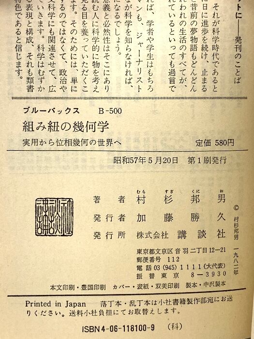 組み紐の幾何学: 実用から位相幾何の世界 (ブルーバックス 500) 講談社 村杉 邦男