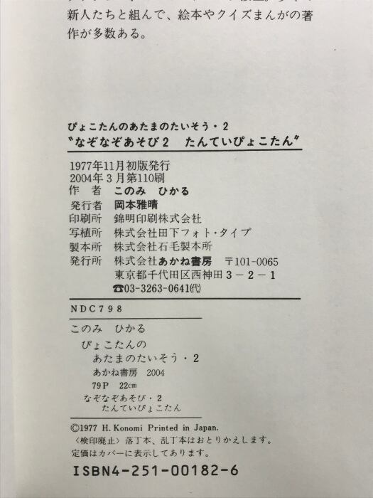 タイトル:なぞなぞあそび 2: たんていぴょこたん (ぴょこたんのあたまのたいそう 2) あかね書房 このみ ひかる
