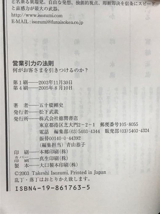 タイトル:『営業引力の法則』何がお客さまを引きつけるのか? 徳間書店 五十棲 剛史