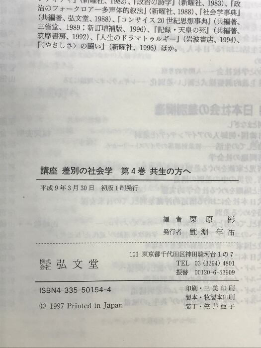 タイトル:講座差別の社会学 4 弘文堂 栗原 彬