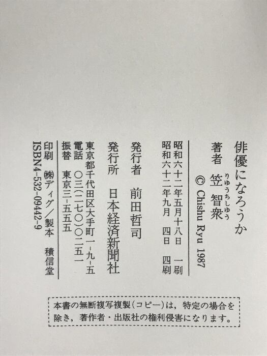 タイトル:俳優になろうか 日経BPマーケティング(日本経済新聞出版 笠 智衆