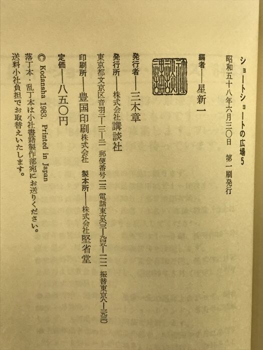 タイトル:ショートショートの広場 5 講談社 星 新一