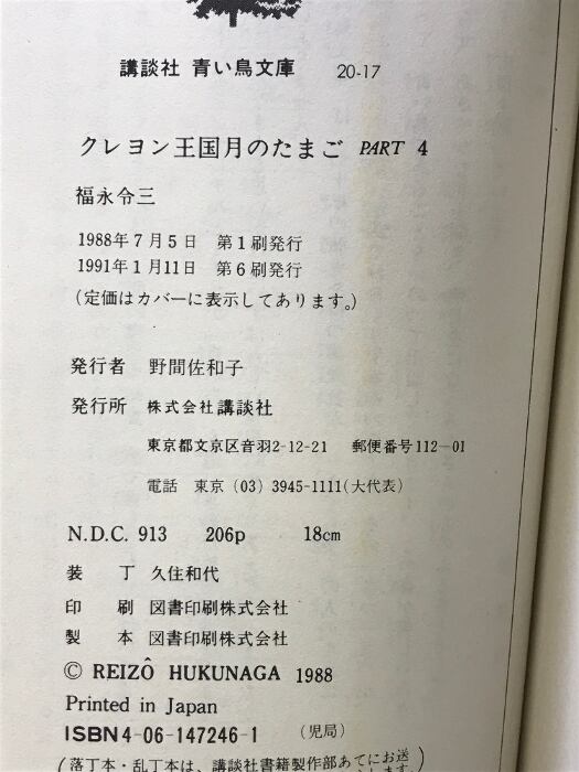 クレヨン王国月のたまご PART4 (講談社青い鳥文庫 20-17) 講談社 福永 令三