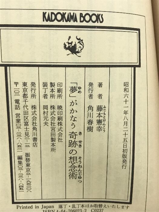 タイトル:夢がかなう奇跡の想念術: あなたを急上昇させる本 (カドカワブックス 23) KADOKAWA 藤本 憲幸