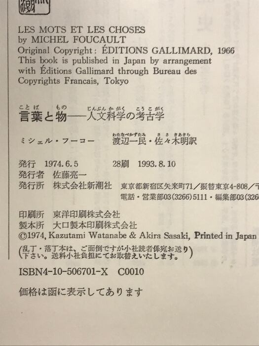 タイトル:言葉と物: 人文科学の考古学 新潮社 ミシェル・フーコー