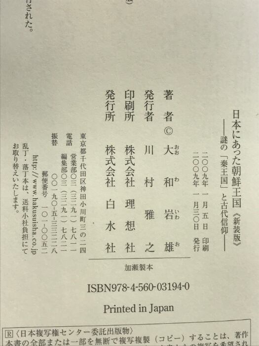 タイトル:日本にあった朝鮮王国―謎の「秦王国」と古代信仰 白水社 大和 岩雄