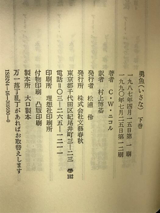 タイトル:勇魚 下 文藝春秋 C.W. ニコル