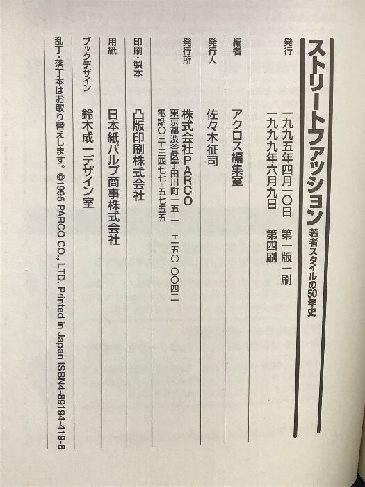 ストリートファッション: 1945-1995 若者スタイルの50年史 (別冊アクロス 時代を読むシリーズ 5) パルコ アクロス編集室