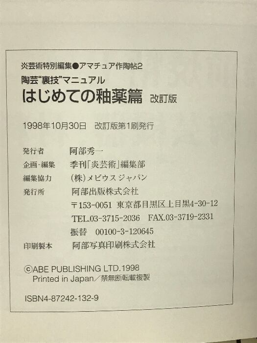 陶芸裏技マニュアル はじめての釉薬篇 改訂版 (アマチュア作陶帖 2) 阿部出版 季刊炎芸術編集部