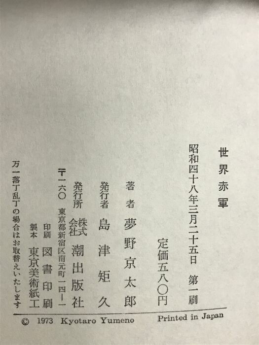 世界赤軍 夢野京太郎小説集 潮出版社 夢野 京太郎