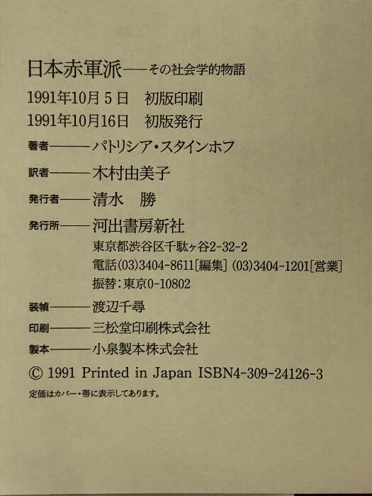 日本赤軍派: その社会学的物語 河出書房新社 パトリシア スタインホフ