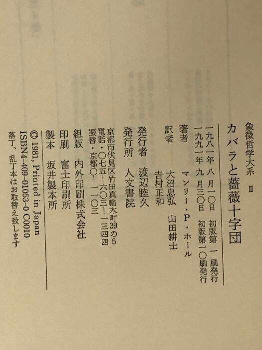 象徴哲学大系 3 (3) カバラと薔薇十字団 人文書院 マンリー P.ホール