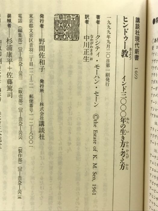 ヒンドゥー教 (講談社現代新書 1469) 講談社 クシティ.モ-ハン・セ-ン