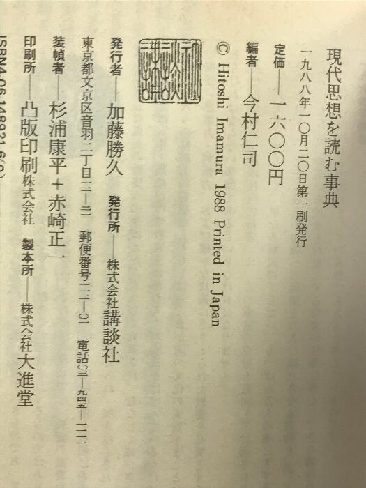 現代思想を読む事典 (講談社現代新書 921) 講談社 今村 仁司