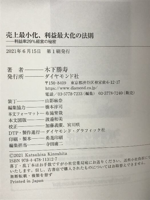 売上最小化、利益最大化の法則──利益率29%経営の秘密 ダイヤモンド社 木下 勝寿
