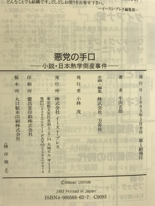 タイトル:悪党の手口: 小説・日本熱学倒産事件 イースト・プレス 牛田正郎