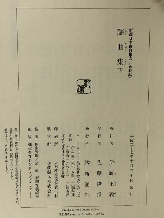 新潮日本古典集成〈新装版〉 謡曲集 下 (新潮日本古典集成 新装版) 新潮社 伊藤 正義