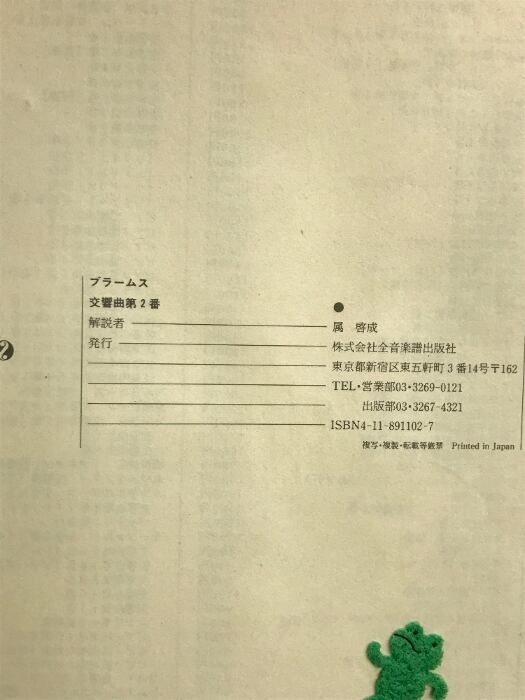 スコア ブラームス/交響曲第2番 ニ長調 作品73 全音楽譜出版社 属 啓成