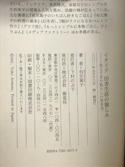 タイトル:イタリア田舎生活の愉しみ: 見えてきた私らしい生き方 海竜社 有元 葉子