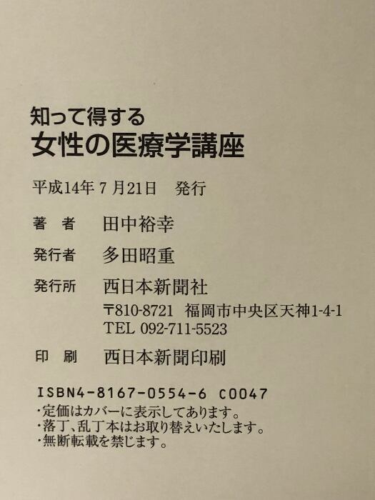 タイトル:知って得する女性の医療学講座 西日本新聞社 田中裕幸
