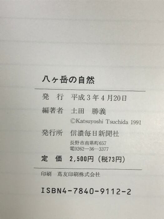八ヶ岳の自然 信濃毎日新聞社出版局 土田 勝義