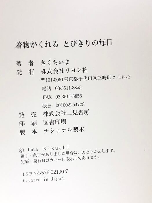 タイトル:着物がくれるとびきりの毎日 リヨン社 きくち いま