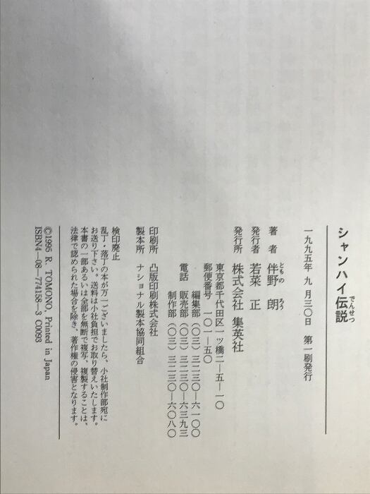 シャンハイ伝説 集英社 伴野 朗