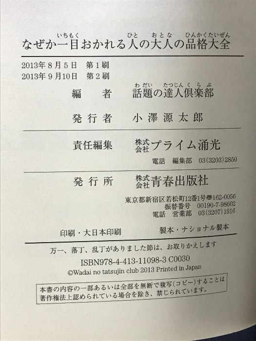 なぜか一目おかれる人の大人の品格大全 青春出版社 話題の達人倶楽部