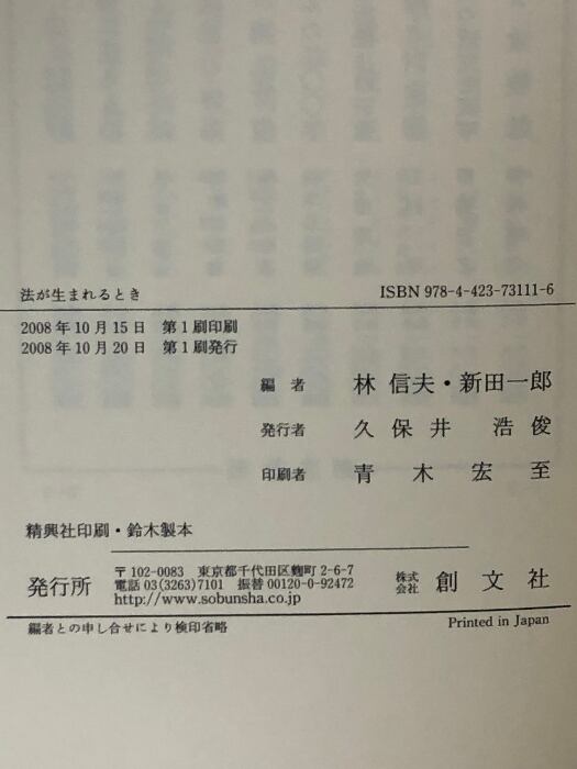タイトル:法が生まれるとき 創文社出版販売 林 信夫
