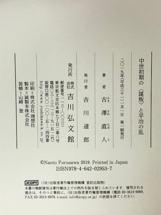 タイトル:中世初期の〈謀叛〉と平治の乱 吉川弘文館 古澤 直人