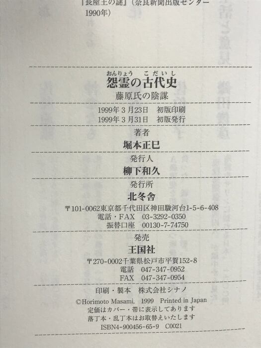 タイトル:怨霊の古代史: 藤原氏の陰謀 北冬舎 堀本 正巳