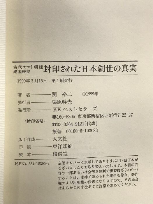 封印された日本創世の真実: 古代ヤマト朝廷建国秘史 ベストセラーズ 関 裕二