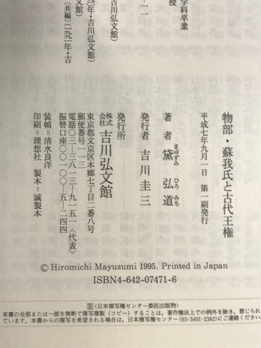 タイトル:物部・蘇我氏と古代王権 吉川弘文館 黛 弘道