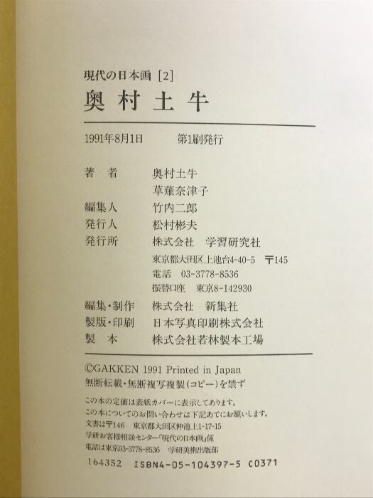 現代の日本画 (2) 学研プラス 奥村 土牛