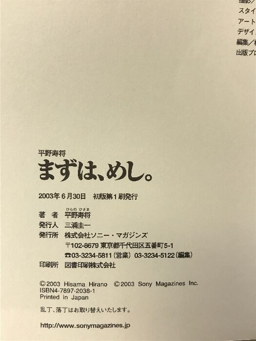 タイトル:まずは、めし。 ソニ-・ミュ-ジックソリュ-ションズ 平野 寿将