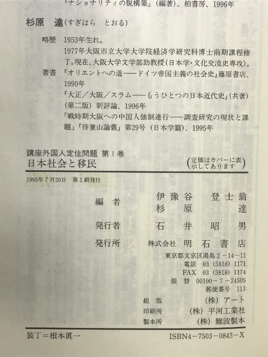 タイトル:日本社会と移民 (講座・外国人定住問題) 明石書店 伊豫谷 登士翁