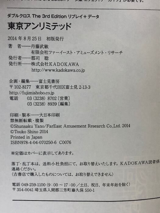 タイトル:ダブルクロスThe 3rd Edition リプレイ+データ東京アンリミテッド (ゲーム関係単行本) KADOKAWA/富士見書房 丹藤武敏