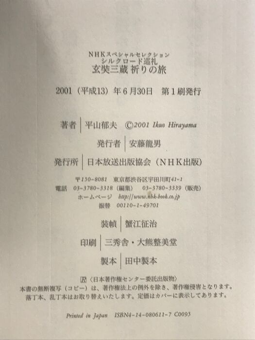 玄奘三蔵祈りの旅: シルクロード巡礼 (NHKスペシャル・セレクション) NHK出版 平山 郁夫