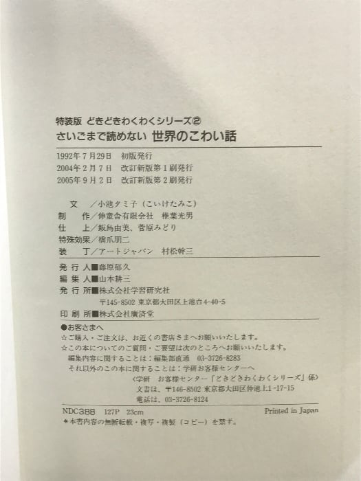 さいごまで読めない世界のこわい話 (どきどき・わくわくシリーズ 特装版 2) 学研プラス 小池 タミ子