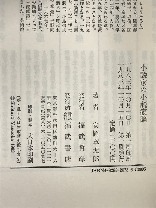 小説家の小説家論 (文芸選書) ベネッセコーポレーション 安岡 章太郎