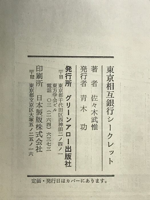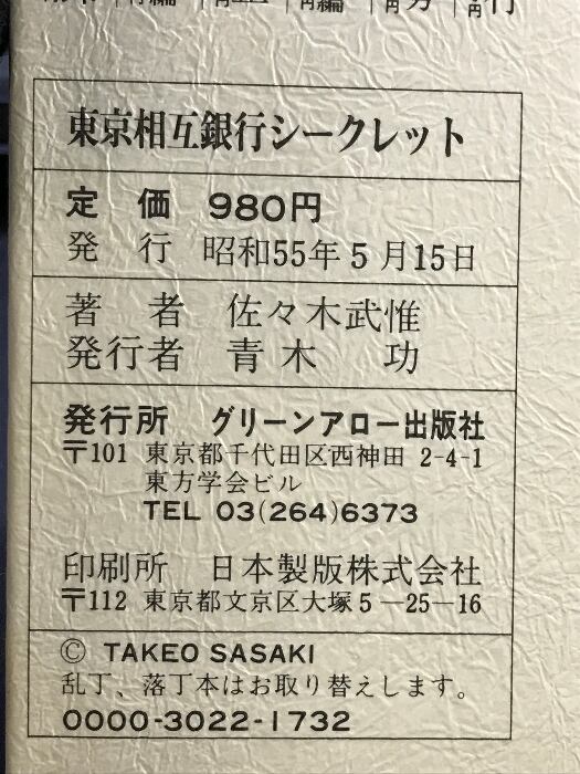 東京相互銀行シークレット グリーンアロー出版社 佐々木 武惟