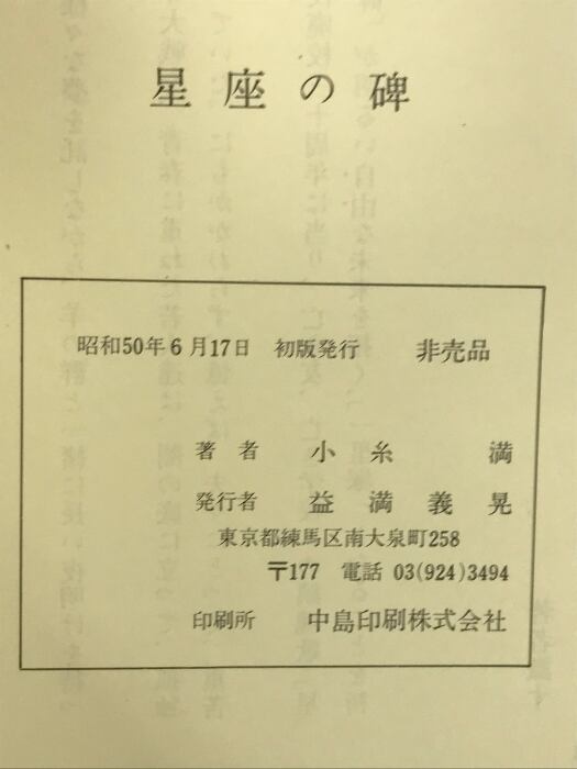 タイトル:星座の碑 陸軍士官学校最後の青春 昭和50年 (初版)小糸満 (非売品)