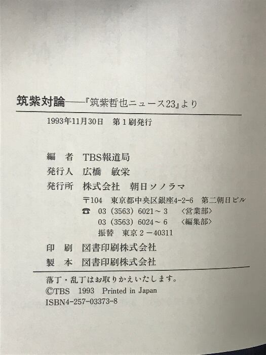 筑紫対論: 筑紫哲也ニュース23より 朝日ソノラマ TBS報道局