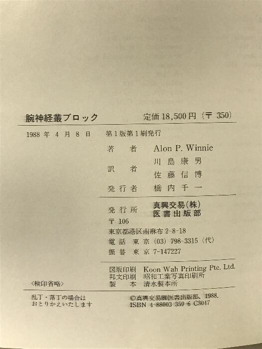 タイトル:腕神経叢ブロック 真興交易医書出版部 WinnieAlonP
