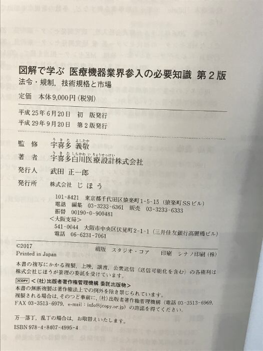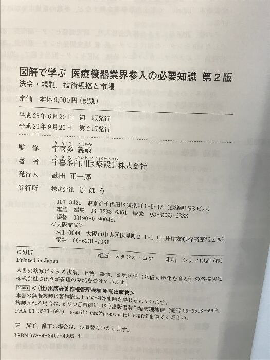 タイトル:図解で学ぶ 医療機器業界参入の必要知識 第2版 じほう 宇喜多白川医療設計株式会社