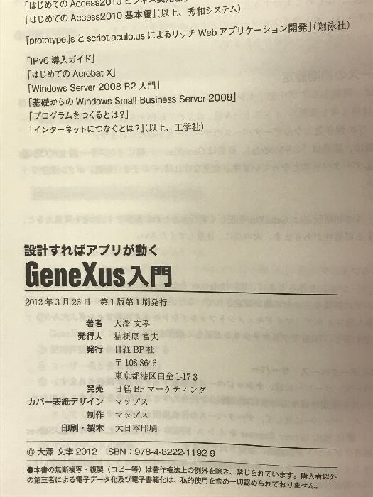 タイトル:設計すればアプリが動く GENEXUS入門 日経BP 大澤 文孝