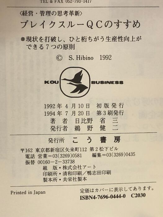 ブレイクスルーQCのすすめ: 経営・管理の思考革新 現状を打破し、ひと桁ちがう生産性向上ができる7つの原則 (KOU BUSINESS) こう書房 日比野 省三
