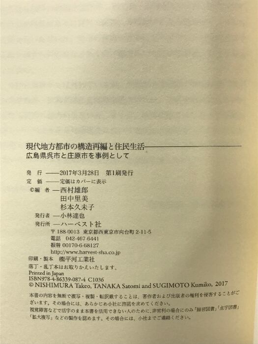 タイトル:現代地方都市の構造再編と住民生活: 広島県呉市と庄原市を事例として ハーベスト社 西村 雄郎