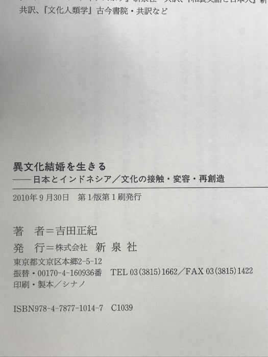 タイトル:異文化結婚を生きる: 日本とインドネシア/文化の接触・変容・再創造 新泉社 吉田 正紀