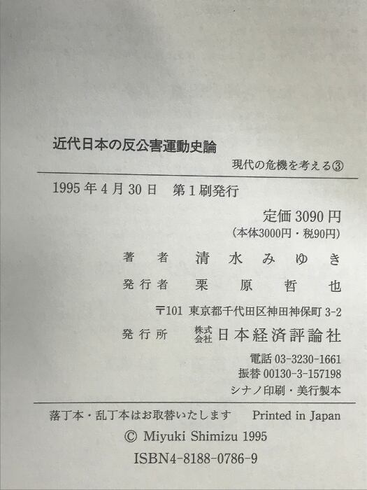 タイトル:近代日本の反公害運動史論 (現代の危機を考える 3) 日本経済評論社 清水 みゆき